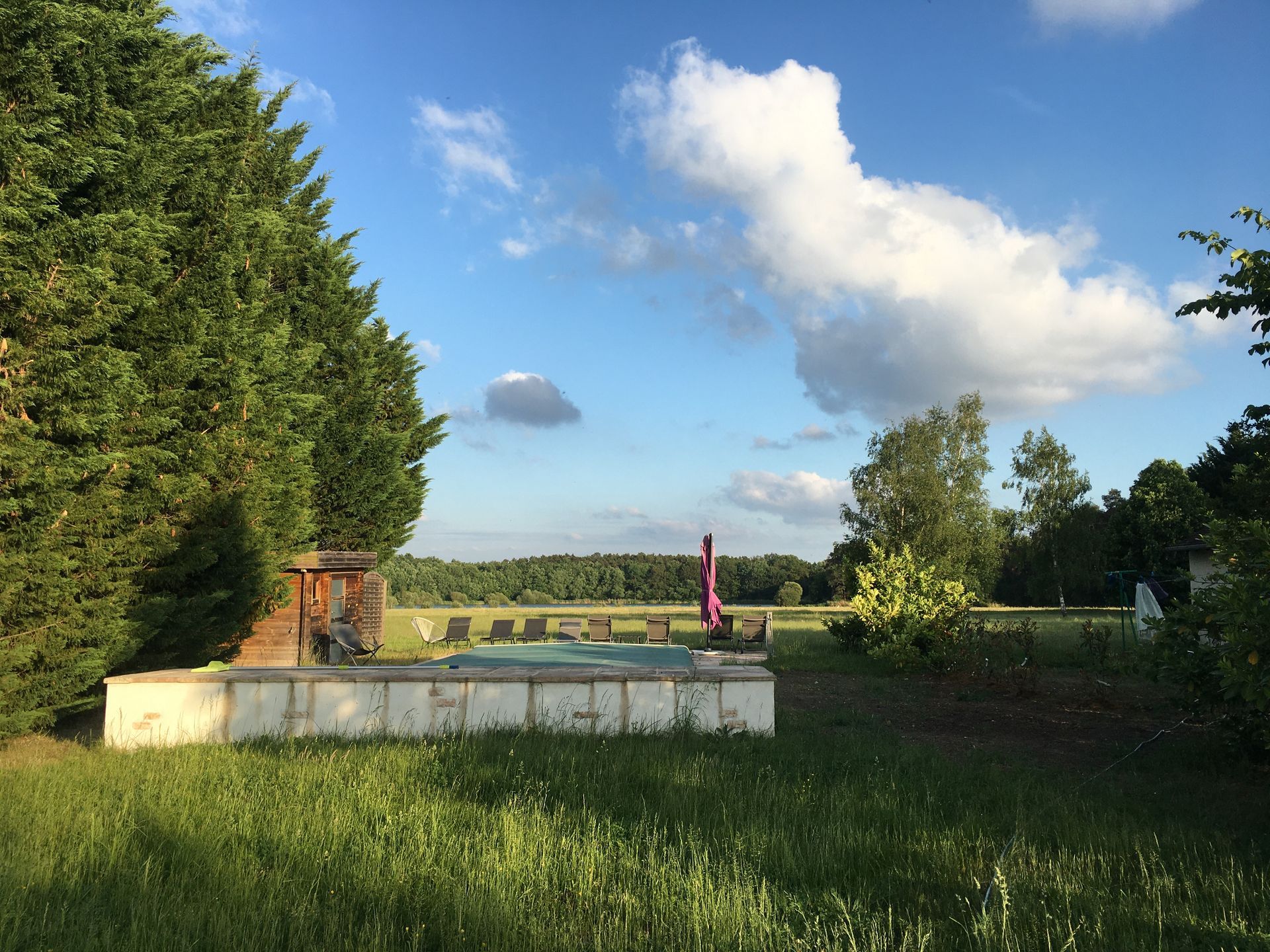* Jeux : pétanque, molkky, quelques raquettes de tennis, cages de foot, portique avec agrès.