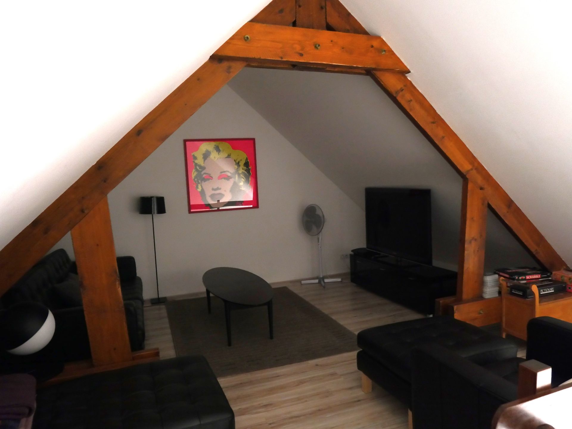 * Salon : TV et DVDs, chaine hifi Bluetooth avec CDs, jeux de société.