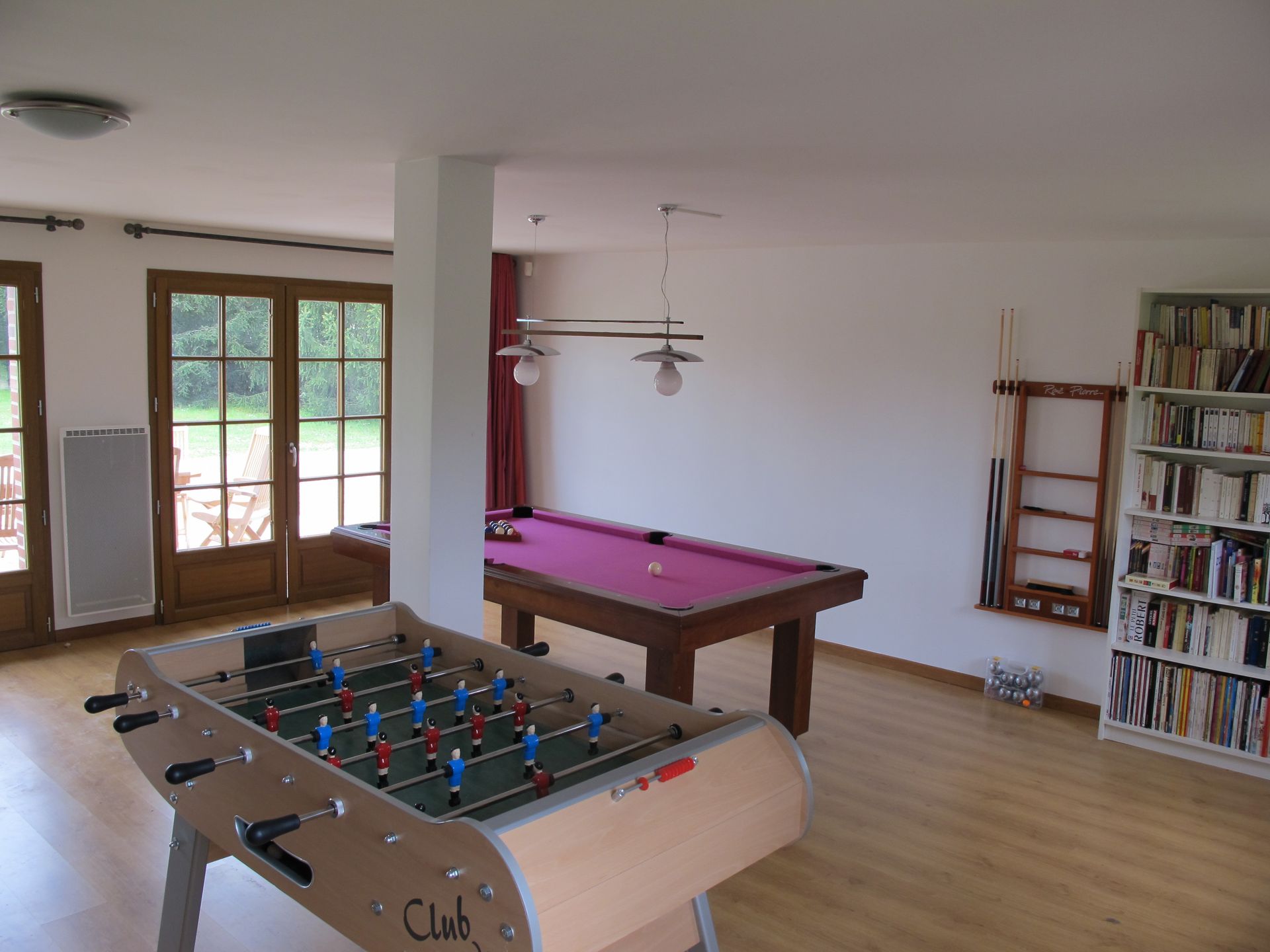 * Salle de jeux : billard, baby-foot, chaine hifi avec 33 tours, bibliothèque (beau choix de livres de pêche)